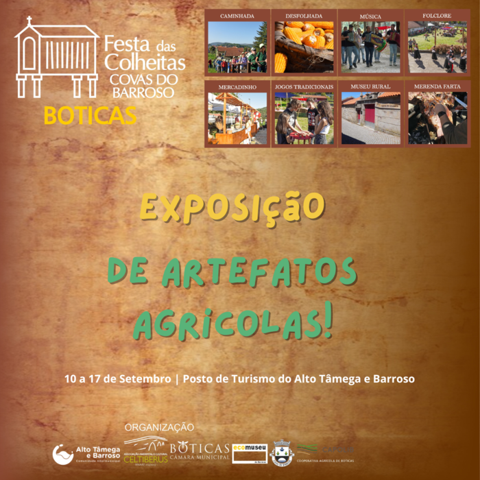 O Posto de Turismo do Alto Tâmega e Barroso (PTAT) vai receber, entre os dias 10 e 17 de setembro, a exposição “Artefactos Agrícolas”, uma iniciativa integrada na promoção da tradicional Festa das Colheitas de Covas do Barroso, no concelho