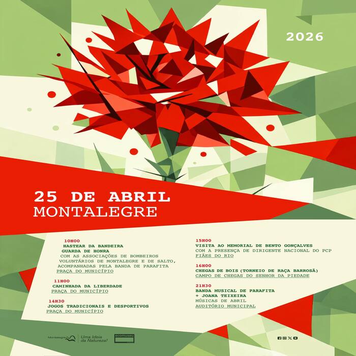 Revelamos o programa comemorativo do 25 de Abril promovido pela Câmara Municipal de Montalegre. Celebramos a liberdade com um conjunto de iniciativas que homenageiam a Revolução dos Cravos e os valores de Abril. Ao longo do dia estão previstos momentos culturais, música, cerimónias oficiais e atividades abertas à comunidade.