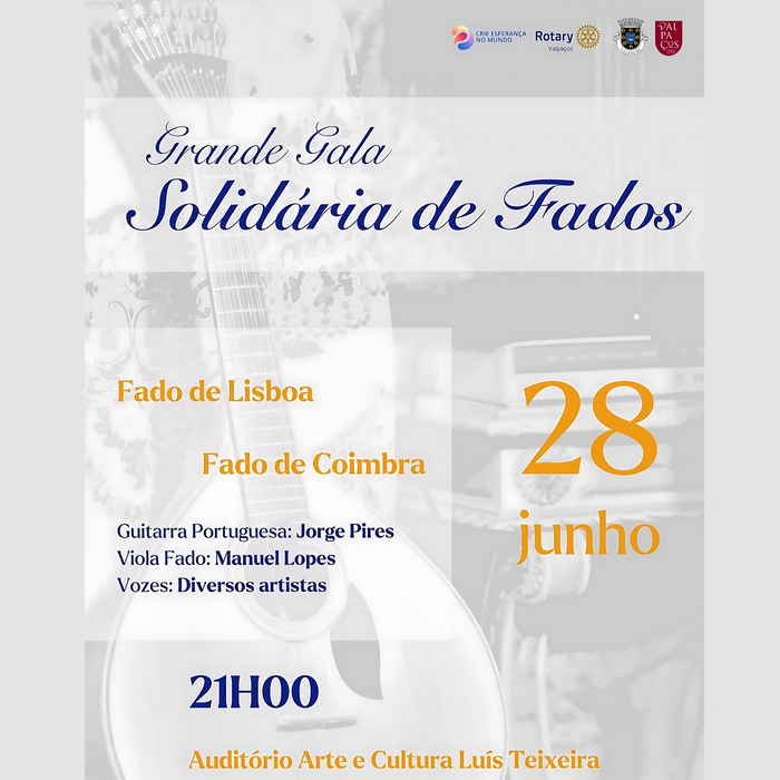 O Auditório Arte e Cultura Luís Teixeira vai receber, no próximo dia 28 de Junho, pelas 21h00, a Grande Gala Solidária de Fados, com a participação de diversos artistas.