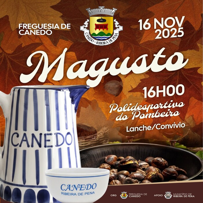 La Junta de Freguesia (conseil paroissial) de Canedo invite toute la population à participer au Magusto de São Martinho, qui aura lieu le 16 novembre à 16h00 au Polidesportivo do Pombeiro, à Canedo.